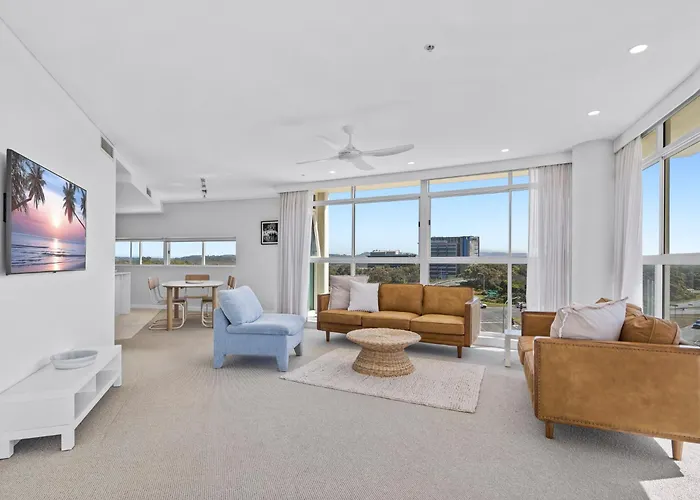 屋上プールを提供する広々とした70m²のStylish 3 Bedroom Apartment With Pool, Sauna & Gym ゴールドコーストは、Tweed Valleyから歩いて6分です。 アパートはCoomera鉄道駅から48km離れた所で、Golden Four Dr at North Kirra Beachバス停ほんの数分の場所にあります。